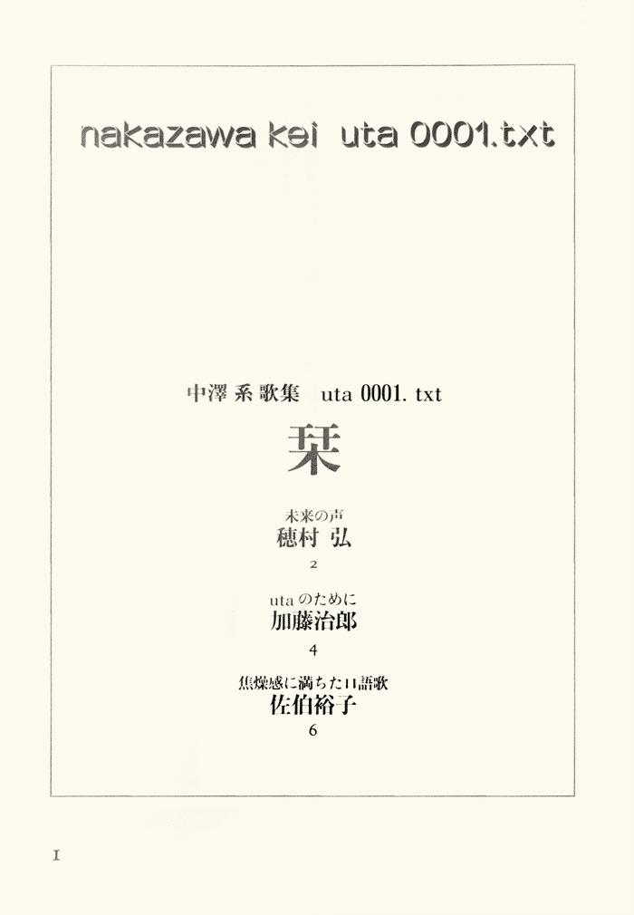 さいかちさんは、雁書館版の『uta 0001.txt』を編集された方。経緯が編集後記に書かれているので、一部引用します。(※原文の漢数字を、ネットでの読みやすさを優先して、算用数字にしています。)