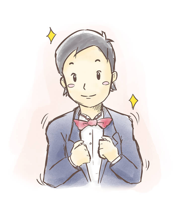 たろうくん:ヘンなんじゃないよ! ぼくの一張羅なんだからね。この蝶ネクタイだってとっておきなんだからね。