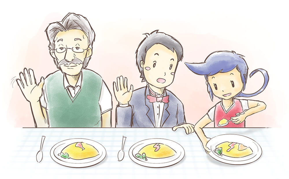 先生:大丈夫。ふたりの疑問があるかぎりどこまでも続いていくよ。きょうは先生おごるからお昼はみんなでオムライス食べちゃおうね!