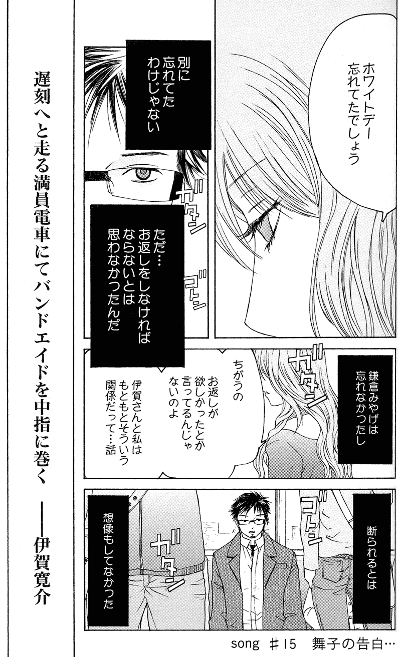 - →『ショートソング』では語り部を曖昧にするテクニックが用いられる。これによって、漫画全体での〈ウイット〉の効いた言い回しの上限値を増やせると、制作者が判断している。