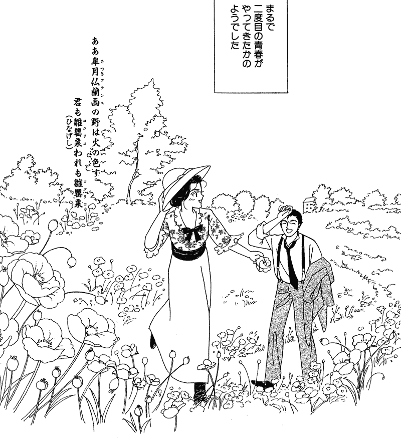 そして二つ目の語り部のパターンは漫画版に固有のものである。小説版で引用した箇所と同じ歌の出てくる場面を見てみよう。